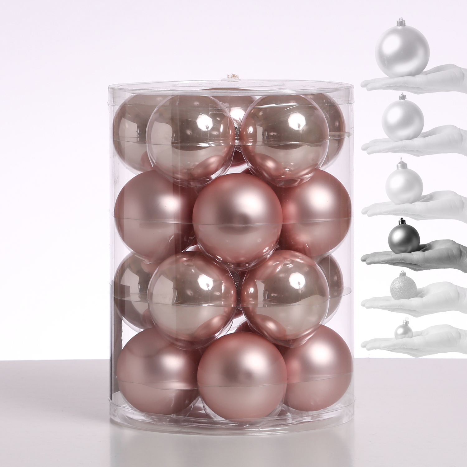 Die wunderschönen puderrosafarbenen Christbaumkugeln aus Glas sorgen nicht nur am Weihnachtsbaum in Deiner Wohnung für eine festliche Stimmung. Die Baumkugeln sehen auch besonders gut als Deko für Fenster, Schalen und Glasgefäße aus. Aber auch im Adventskranz, in Adventssträußen oder Gestecken können die Christbaumkugeln hervorragend dekoriert werden.