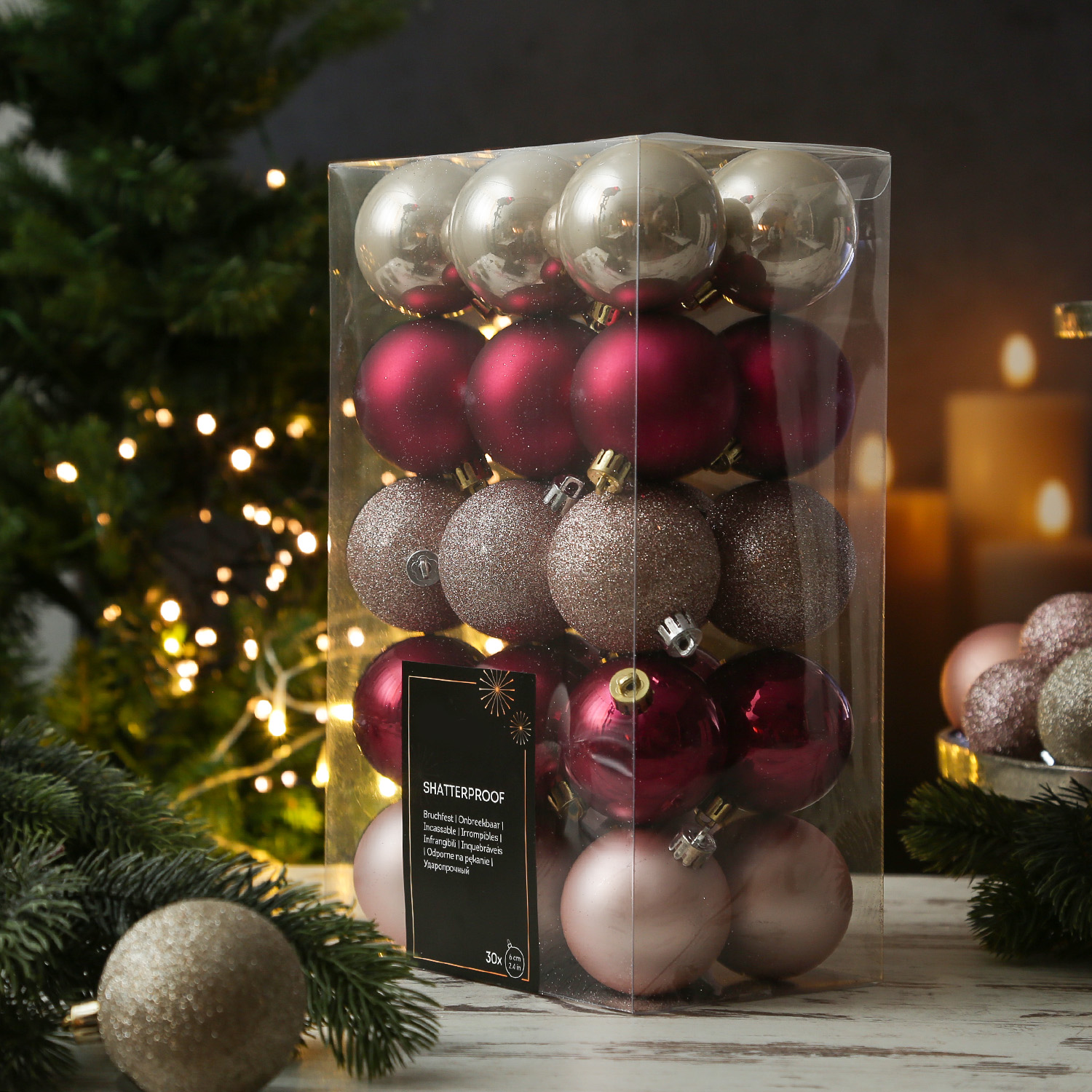 Wir wünschen Dir viel Spaß beim Dekorieren mit diesem tollen 30er Set Weihnachtsbaumkugeln!