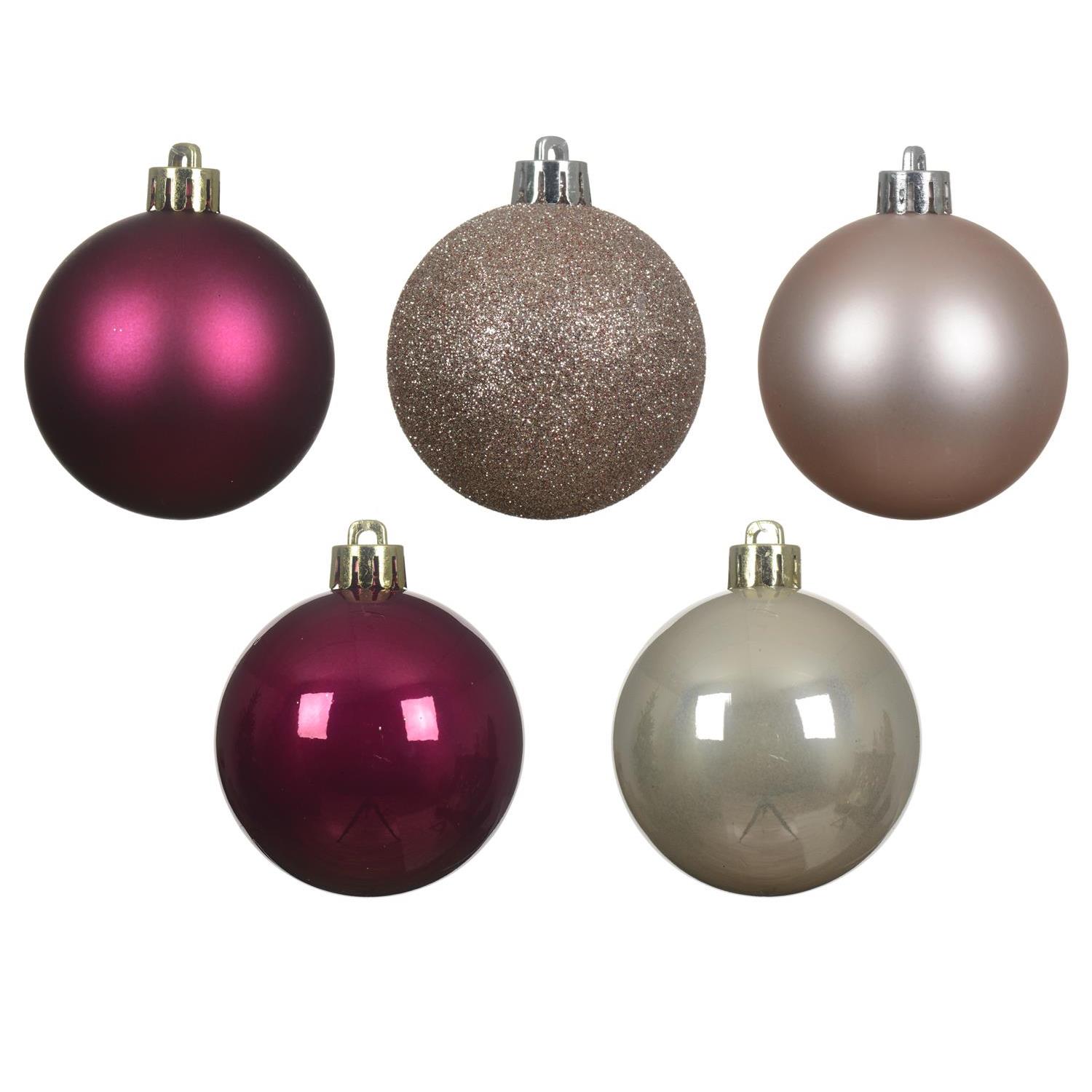 Christbaumkugeln - Weihnachtsbaumkugeln - bruchfest - D: 6cm - glänzend, matt und glitzernd - pink, rosa - 30er Set