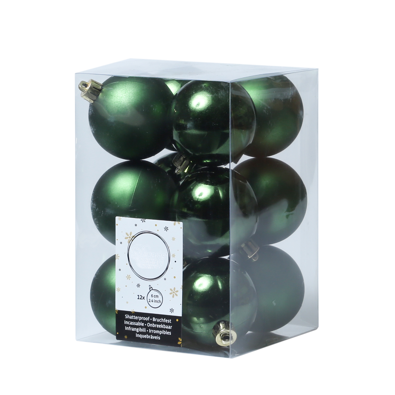 Christbaumkugel - Weihnachtsbaumkugel- bruchfest - D: 6cm - glänzend und matt - grün - 12er Set