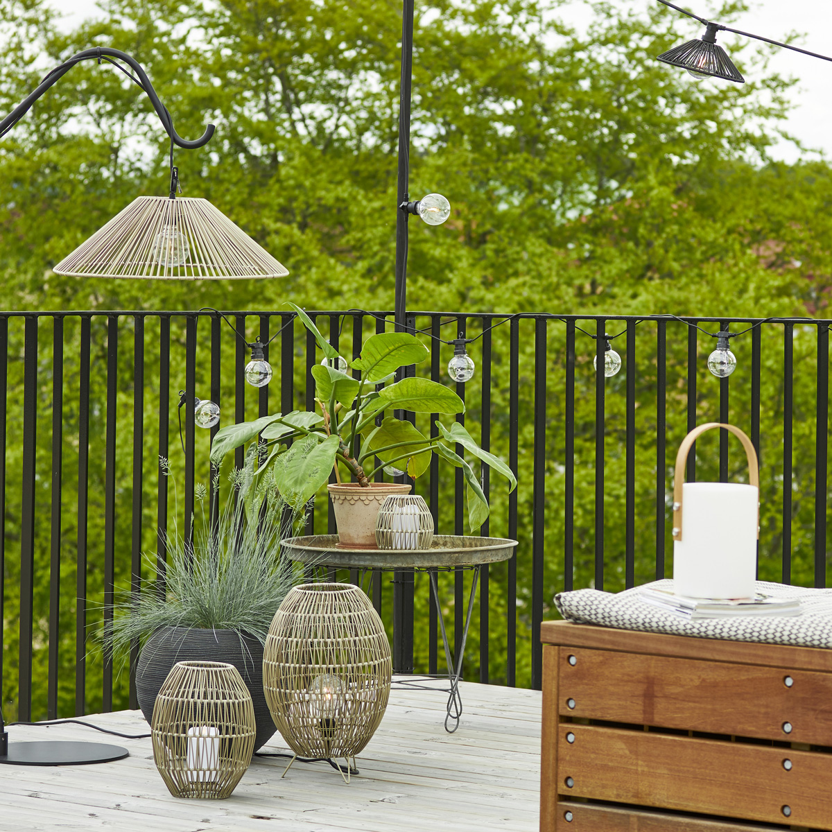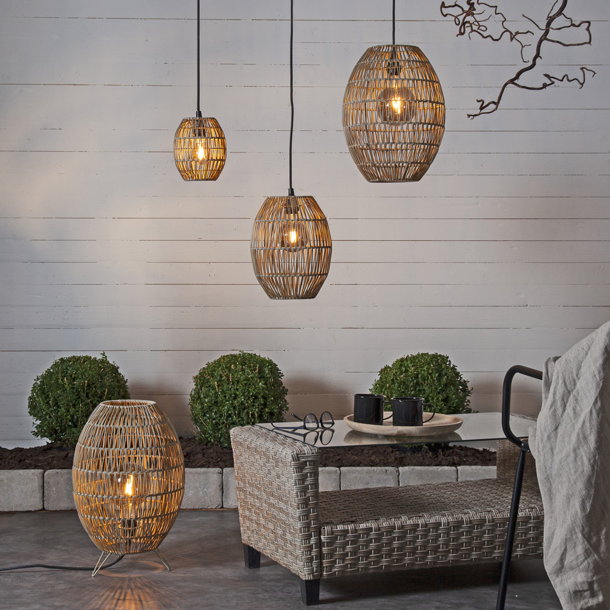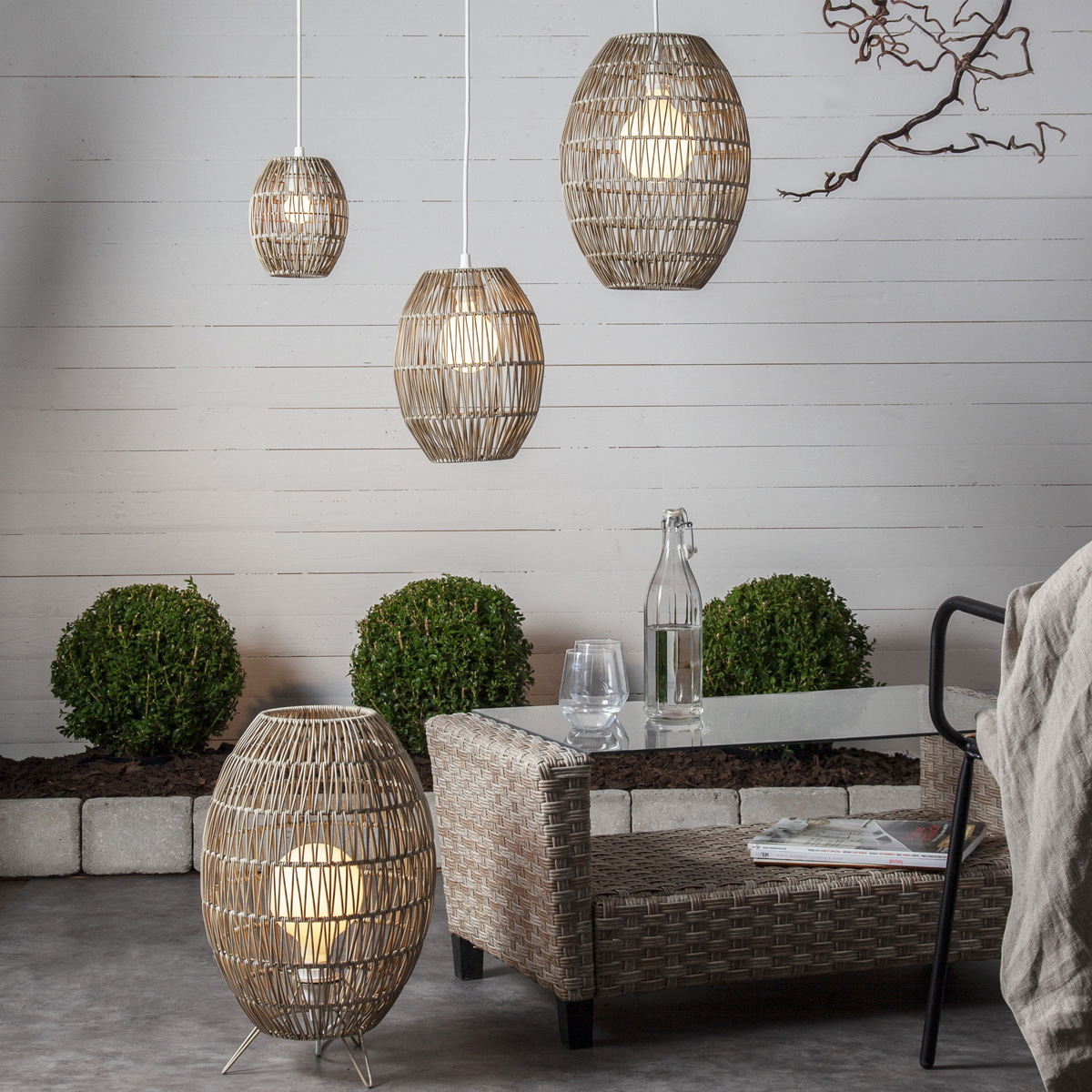 Die Lampenschirme der LINDE Serie sind aus einem wetterfesten Kunststoffband geflochten. So können sie dauerhaft auch im Außenbereich eingesetzt werden.