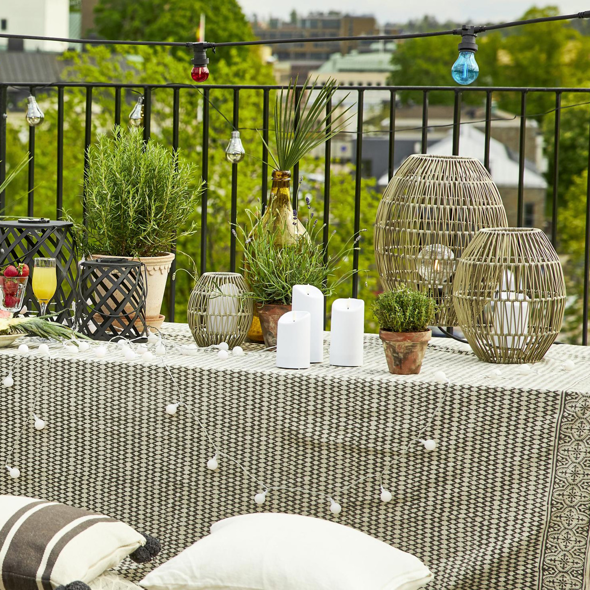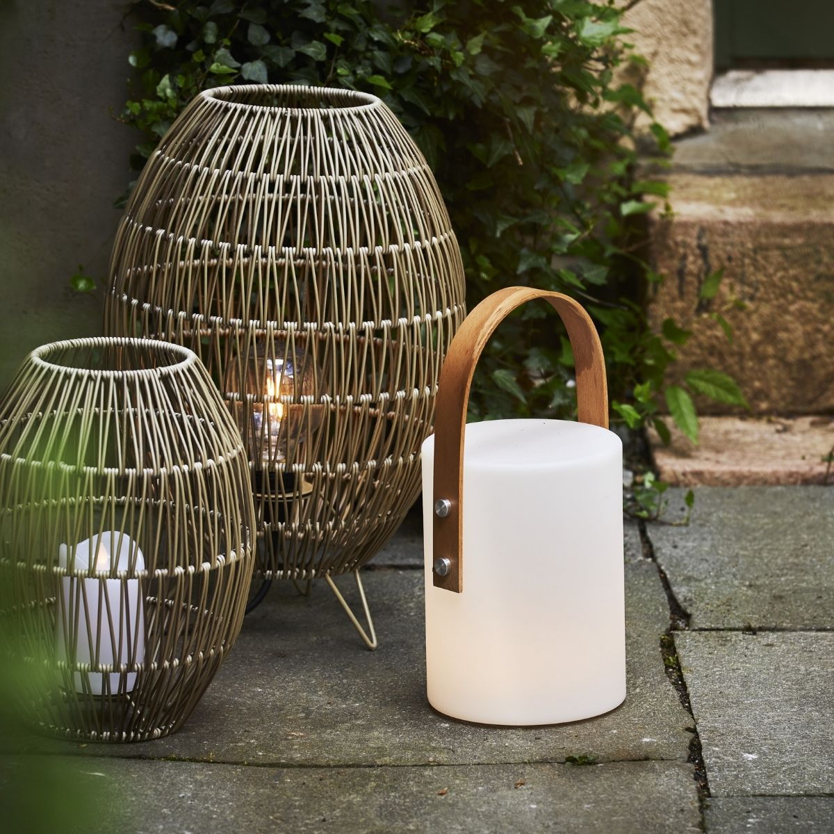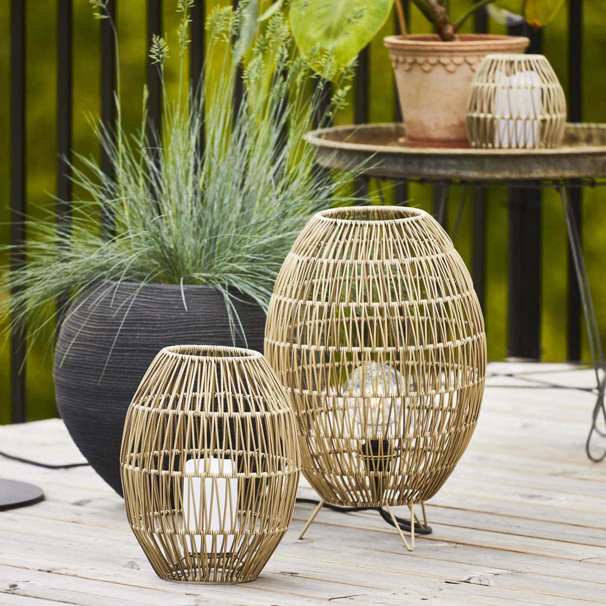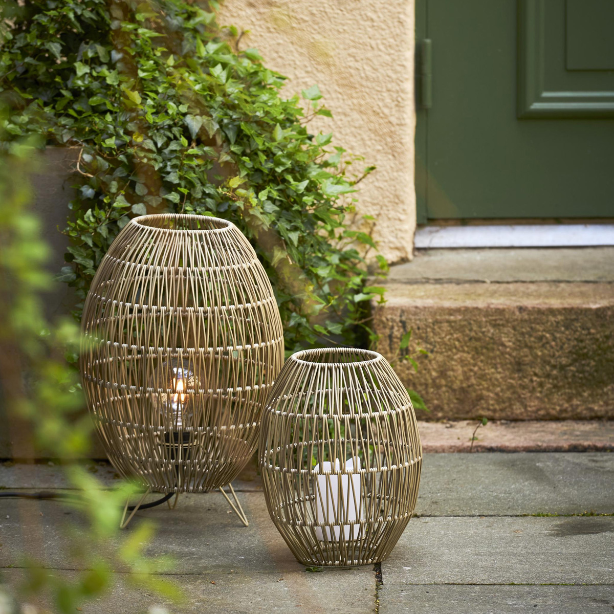 Die Lampenschirme der LINDE Serie sind aus einem wetterfesten Kunststoffband geflochten. So können sie dauerhaft auch im Außenbereich eingesetzt werden.