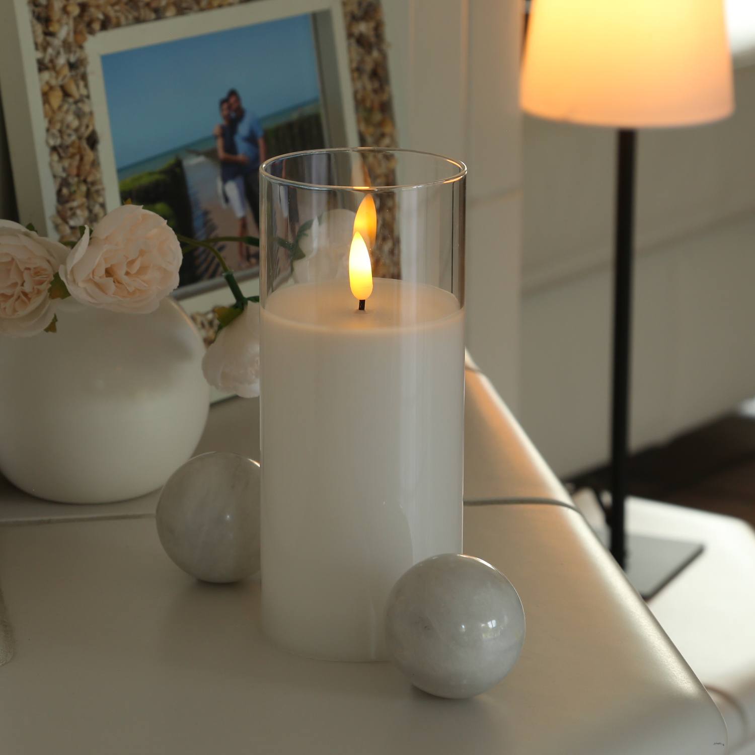 Dieses LED Windlicht ist zeitlos elegant und lässt sich ganzjährig in die Deko einbauen. Auch an lauen Sommerabenden auf der Terrasse oder dem Balkon wird dieses LED Windlicht gerne eingesetzt.