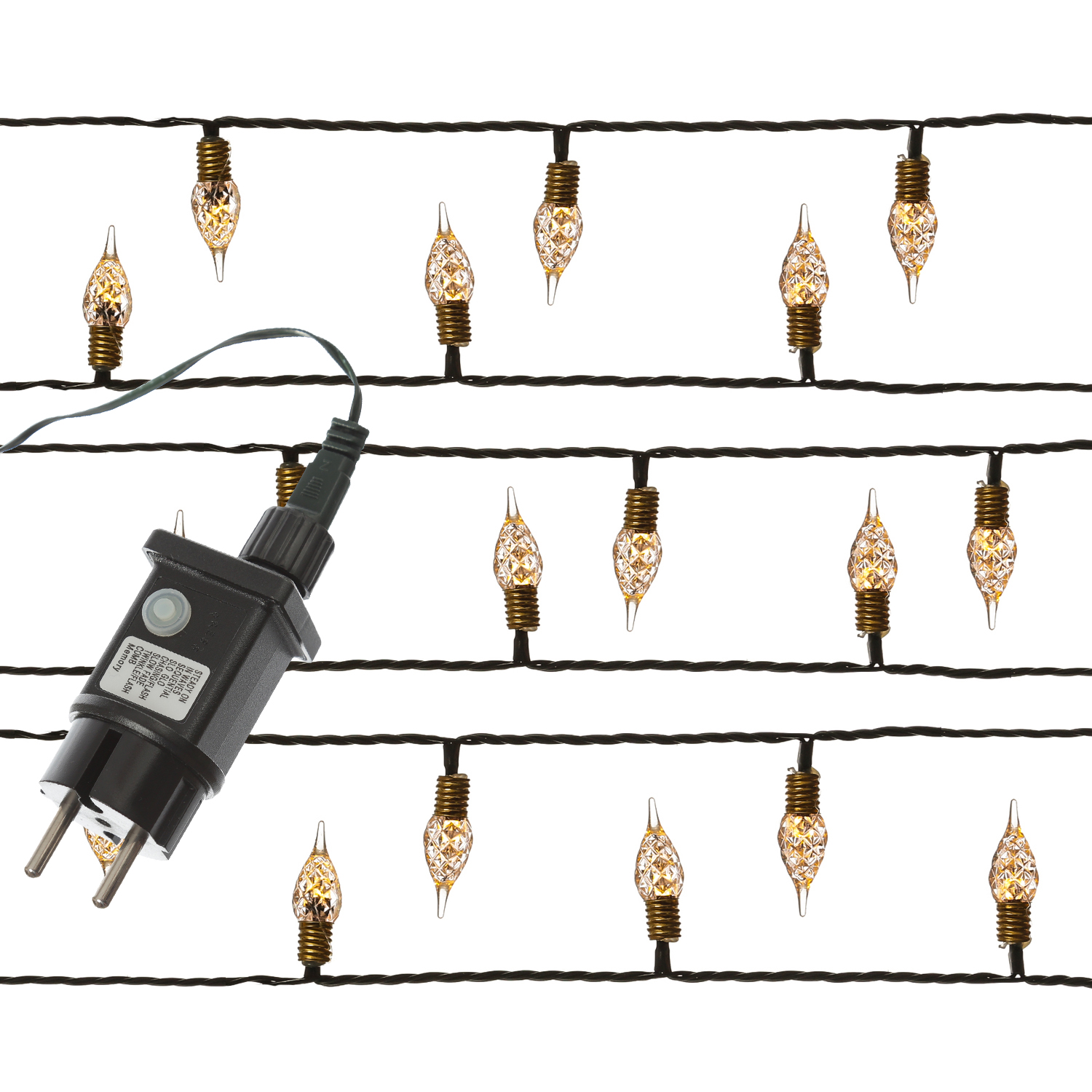 Die LED Lichterkette mit den romantischen Mini Birnchen mit Rautenmuster im Vintage Look ist garantiert ein Highlight auf Deinem Weihnachtsfest als Baumlichterkette aber auch im Partyraum oder an der gemütlich dekorierten Veranda.