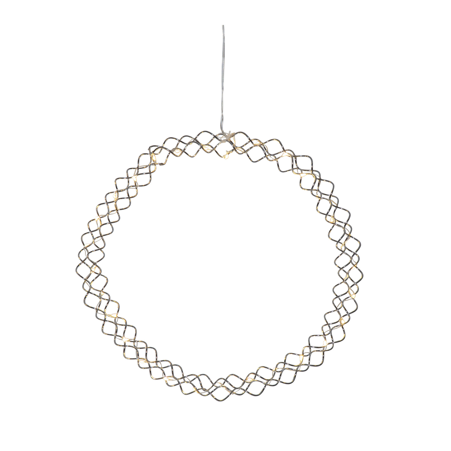 LED Lichtkranz Hoop - 30 warmweiße LED - D: 30cm - Metall - Batteriebetrieb - Timer - silber