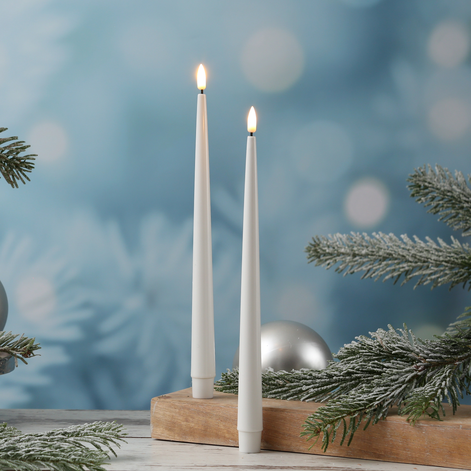 LED Stabkerzen ELLA - Echtwachs - realistische 3D Flamme - H: 28cm - weiß - 2 Stück