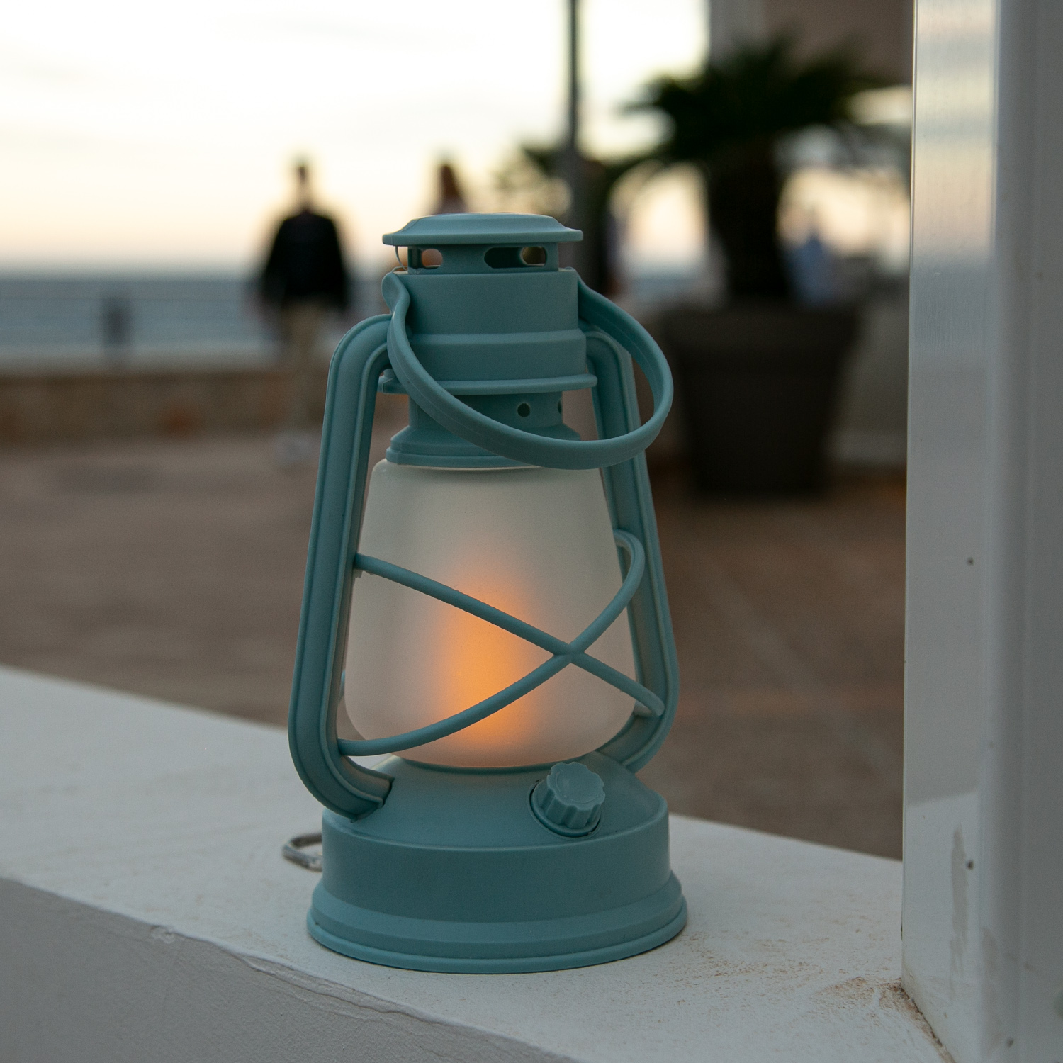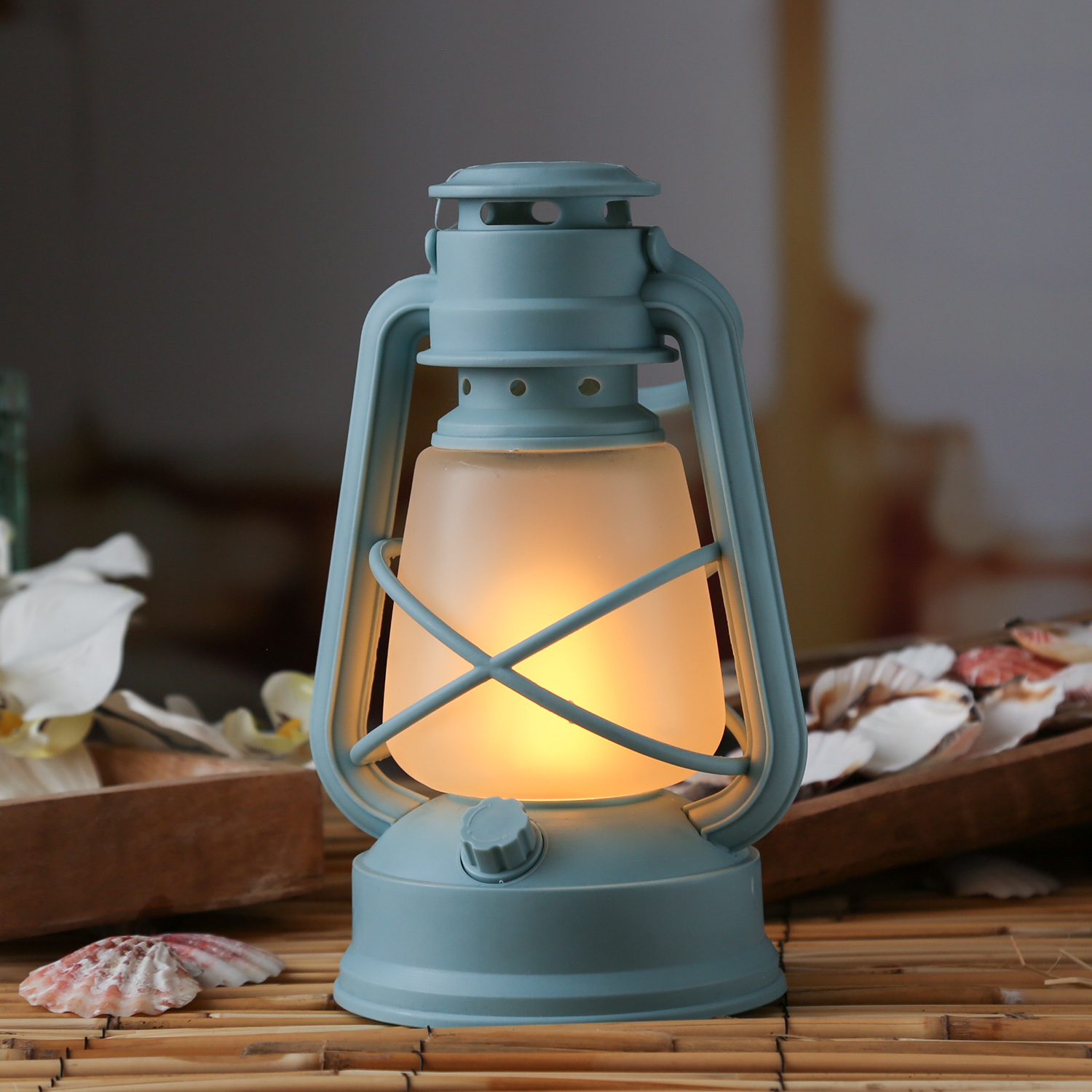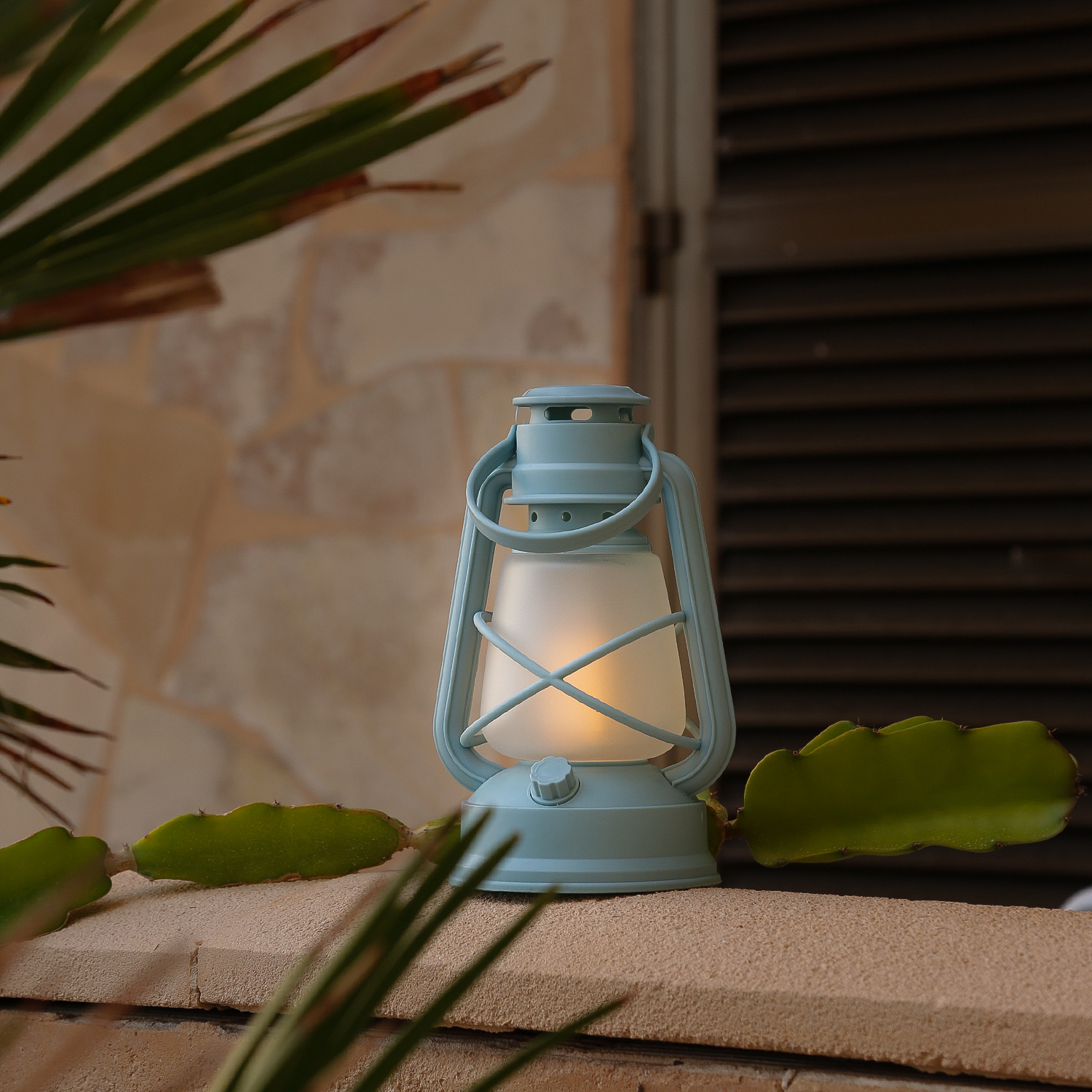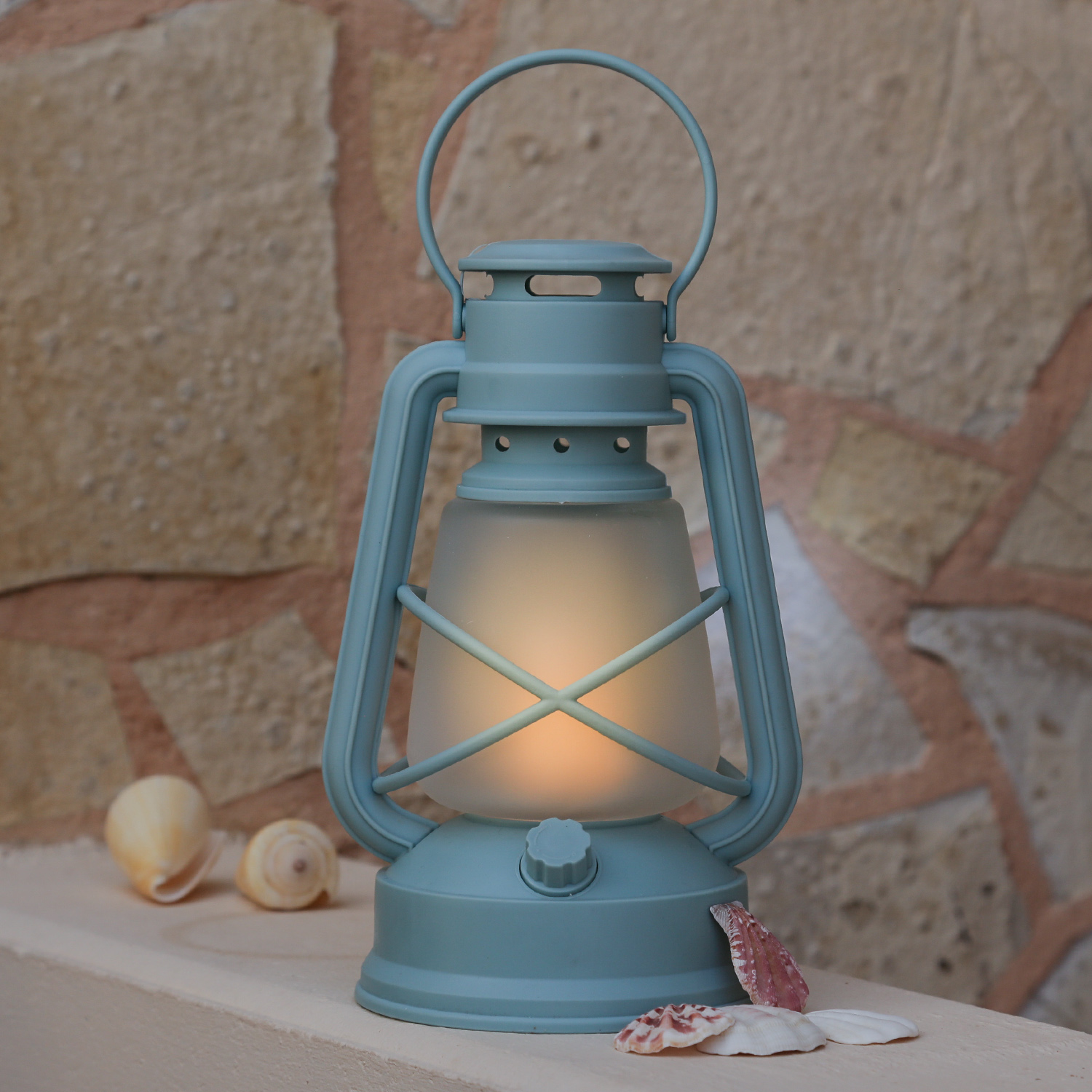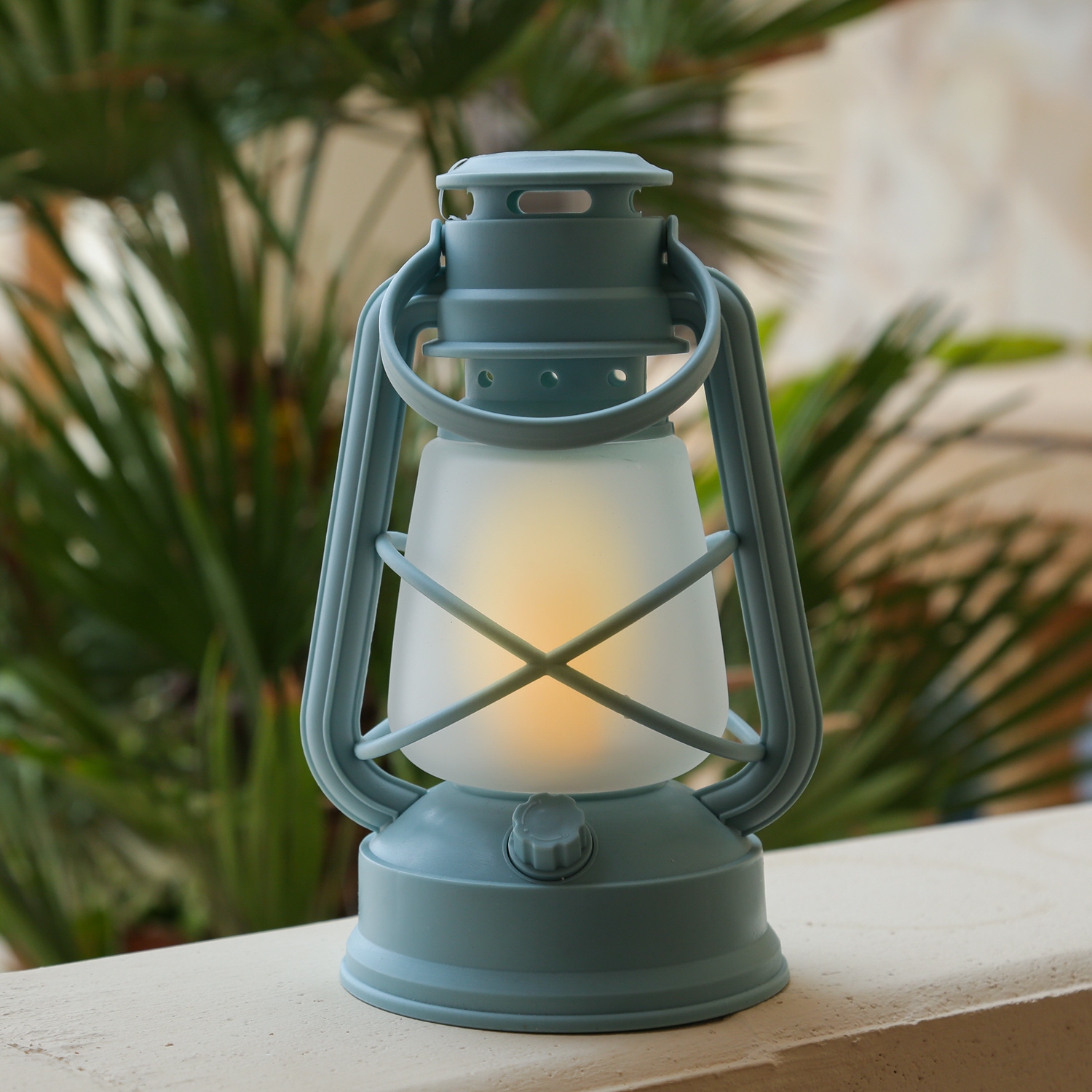 Lass deine Abende mit der batteriebetriebenen hellblauen Sturmlaterne mit Flackerflamme aufleuchten