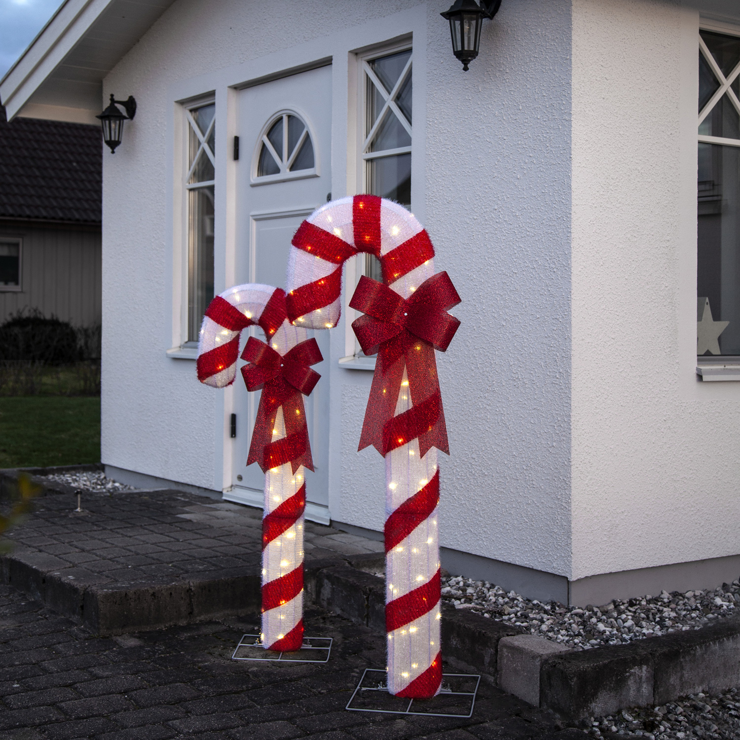 LED Zuckerstange - 50 warmweiße LED - H: 1,2m - inkl. Trafo - für Außen - rot, weiß
