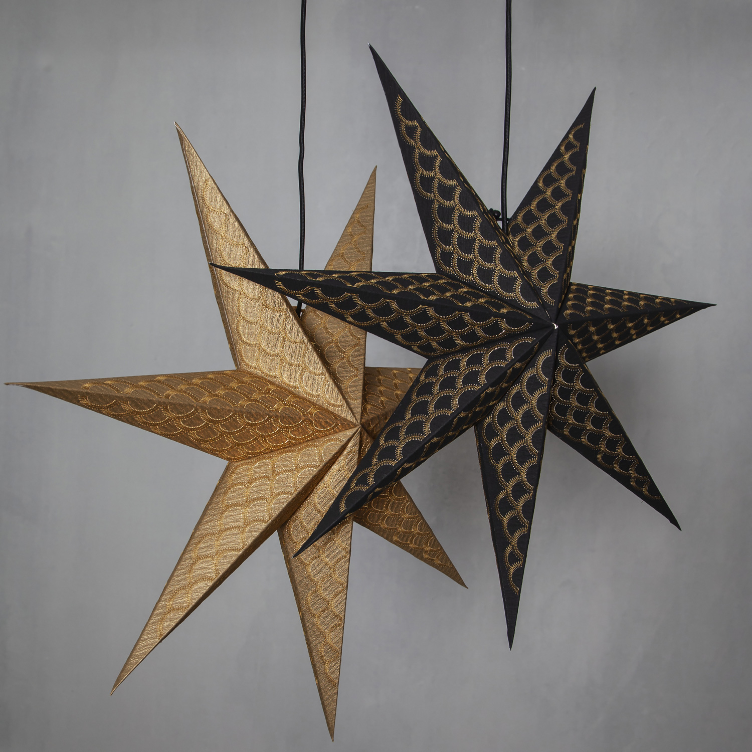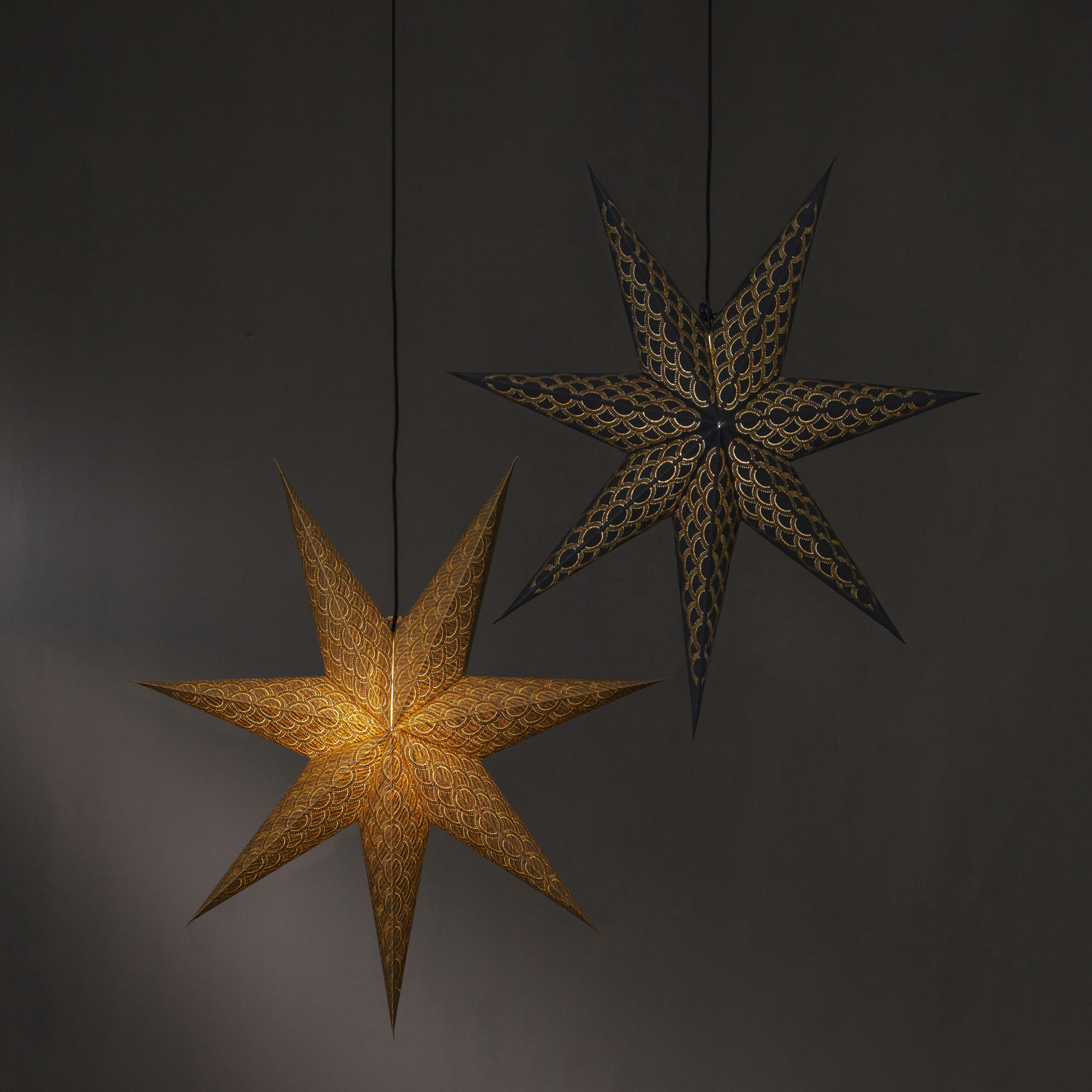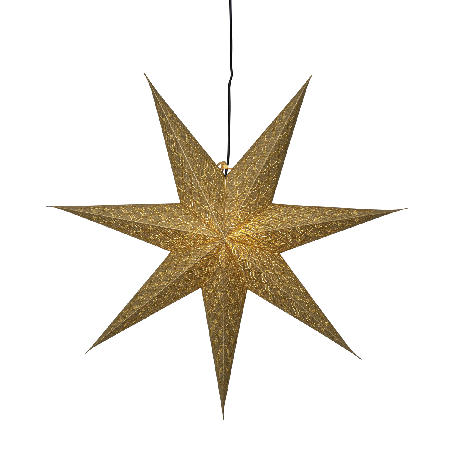 Papierstern Brodie - hängend - 7-zackig - D: 60cm - Stickerei - Baumwolle - gold