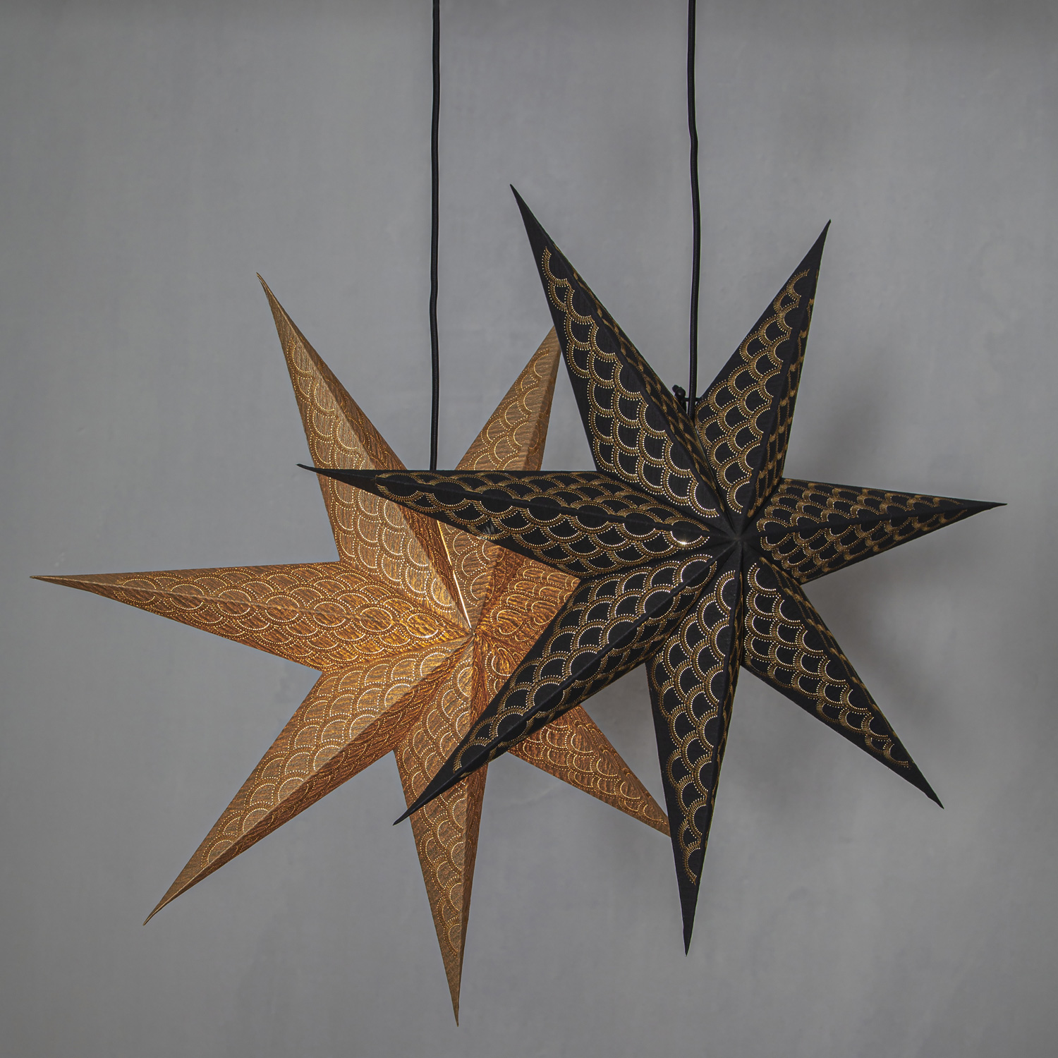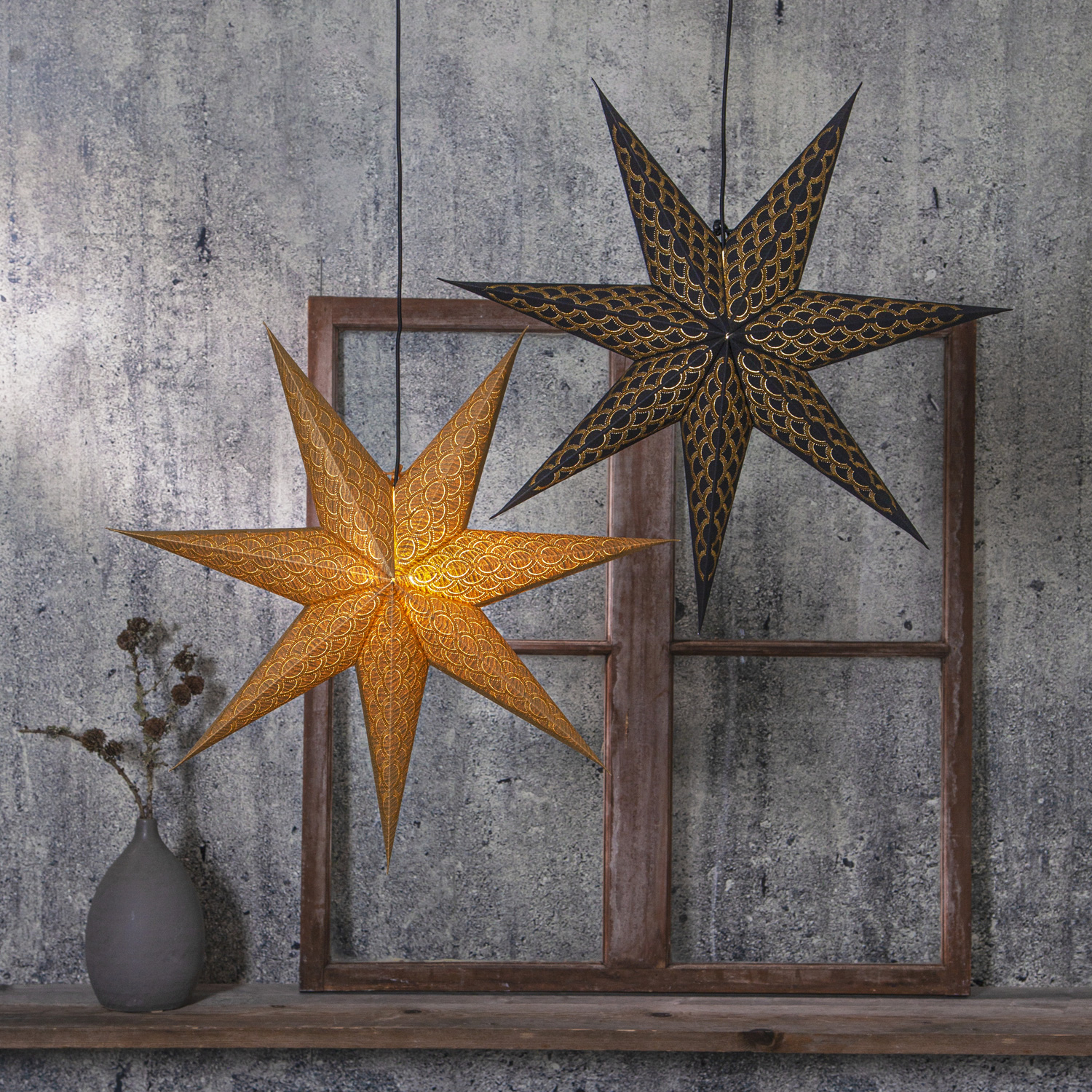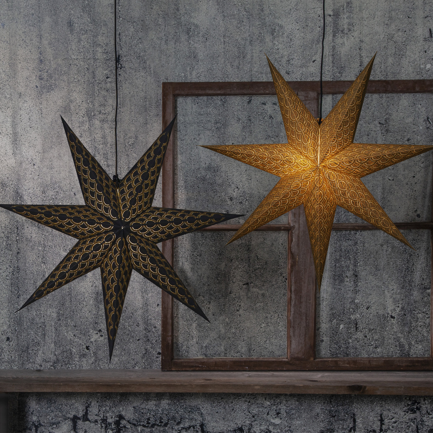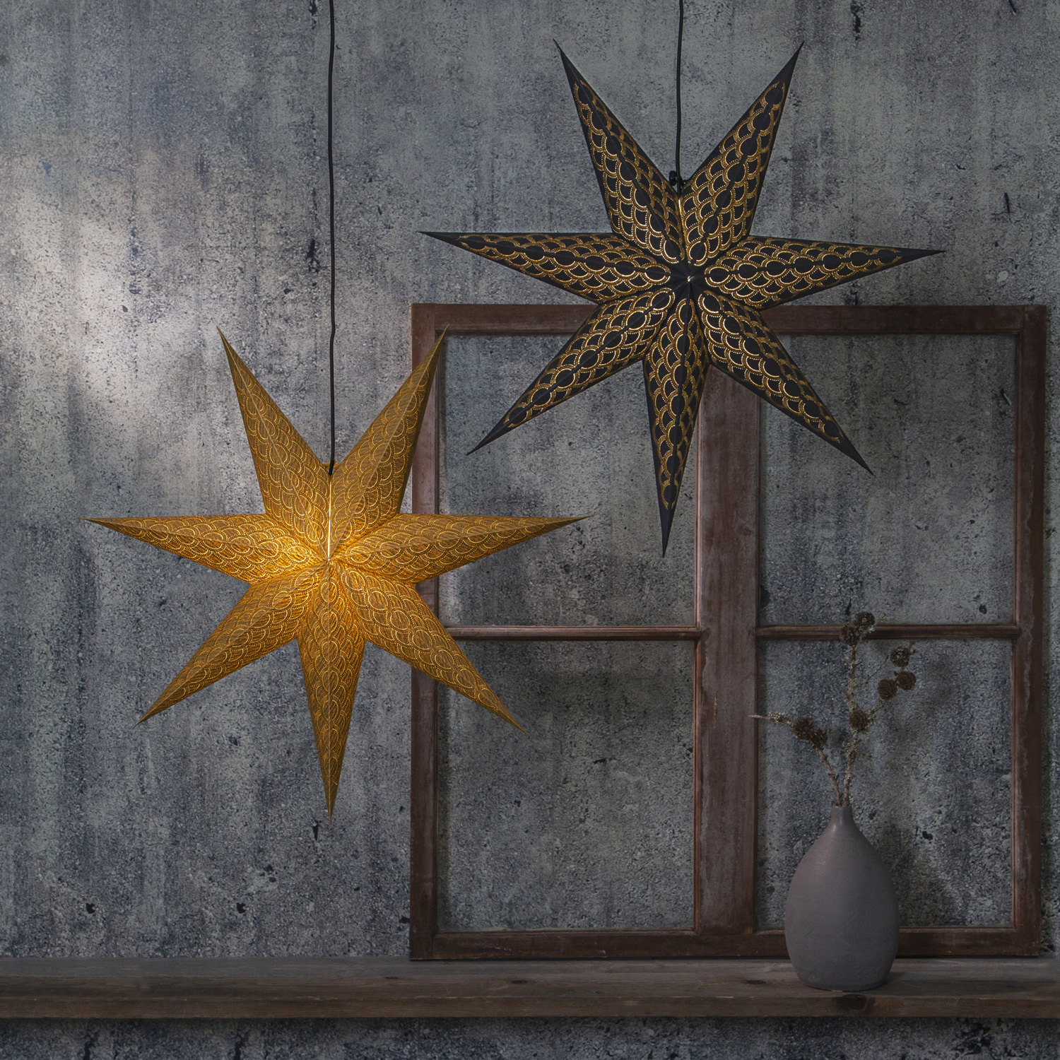 Papierstern Brodie - hängend - 7-zackig - D: 60cm - Stickerei - Baumwolle - gold