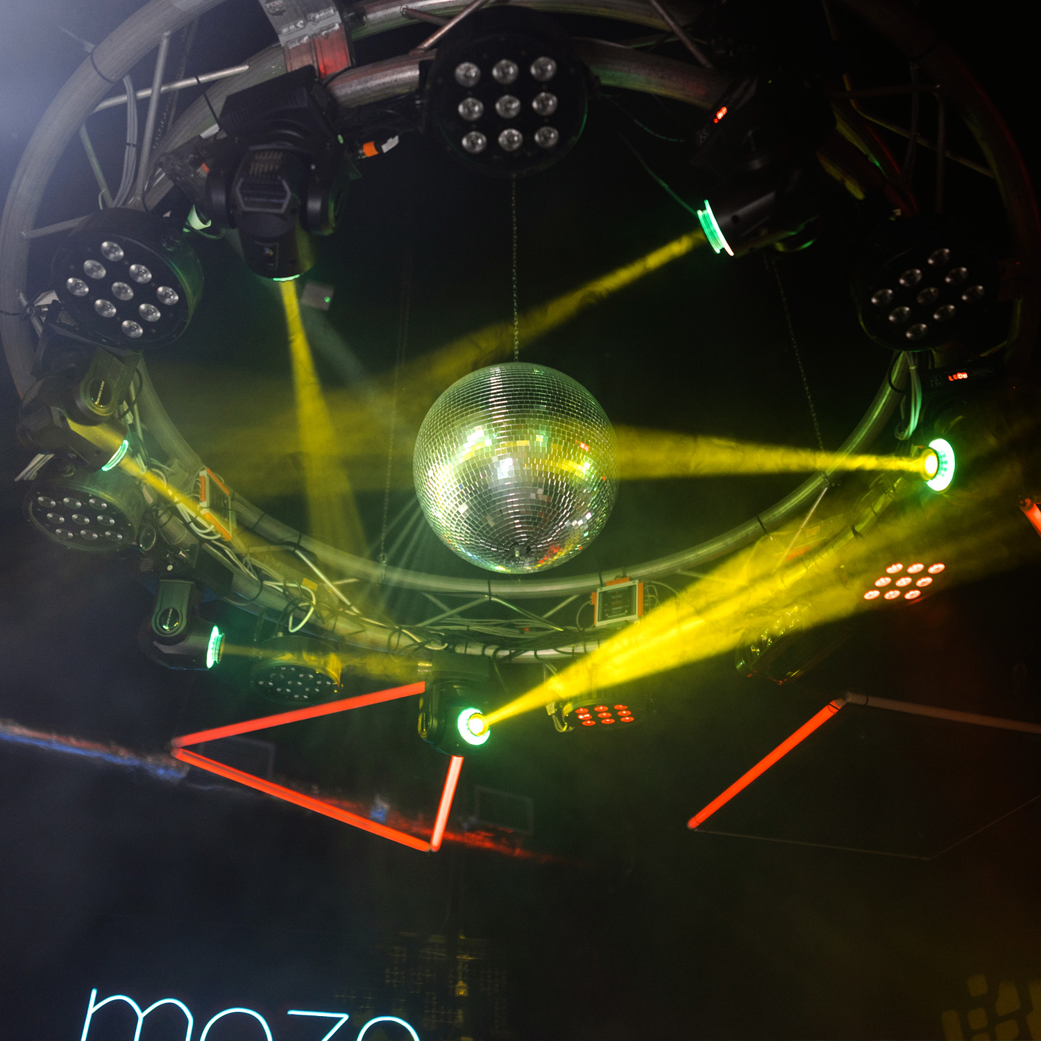 Um den bestmöglichen Effekt zu erzielen, sind die Spiegelfacetten auf 10x10mm geschnitten und nahezu lückenlos verklebt. Dadurch wird möglichst viel auftreffendes Licht reflektiert und in Strahlen aufgebrochen. Das ergibt den legendären Diskoeffekt, der bis heute nichts an Attraktivität verloren hat.