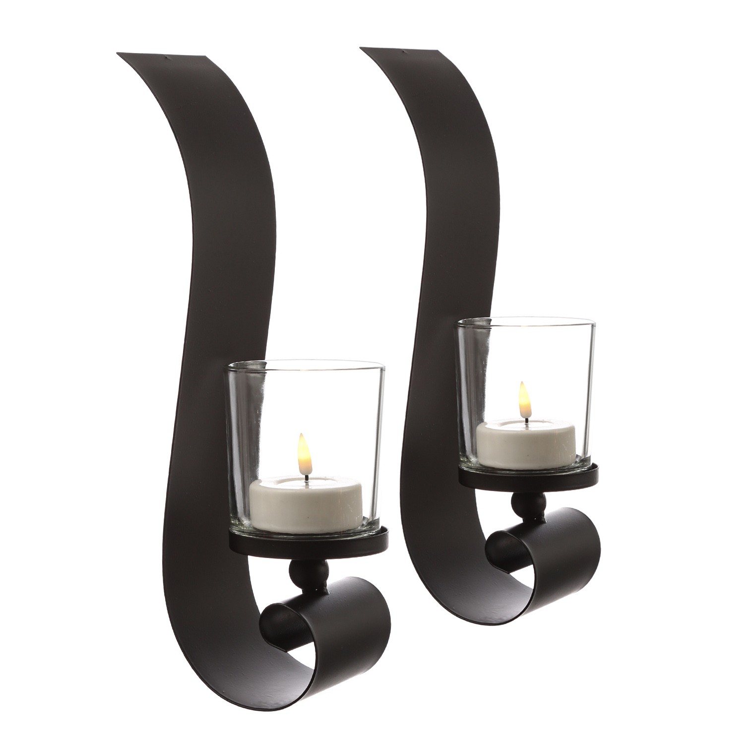 Wandkerzenhalter ROLL - mit Glaskerzenhalter - Metall - H: 35cm - schwarz - 2er Set