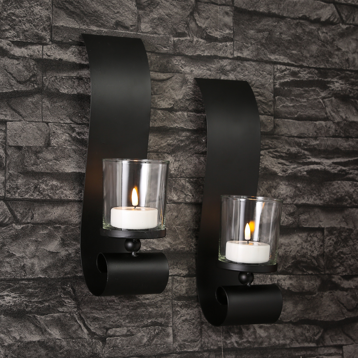 - 2er Set Kerzenhalter für die Wand inkl. 2 Stück Glaswindlichter