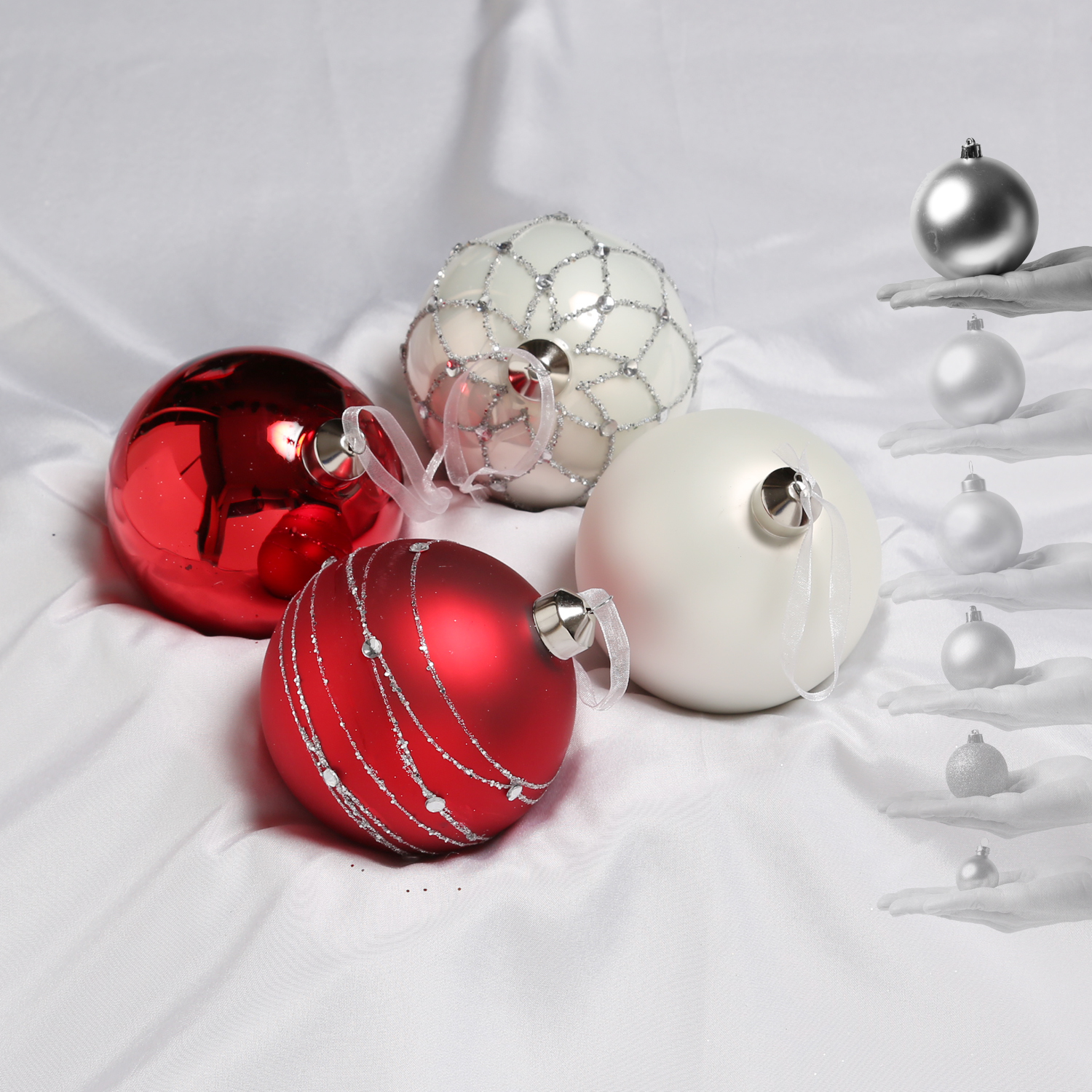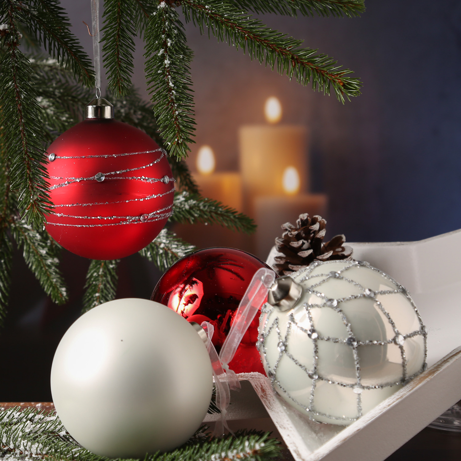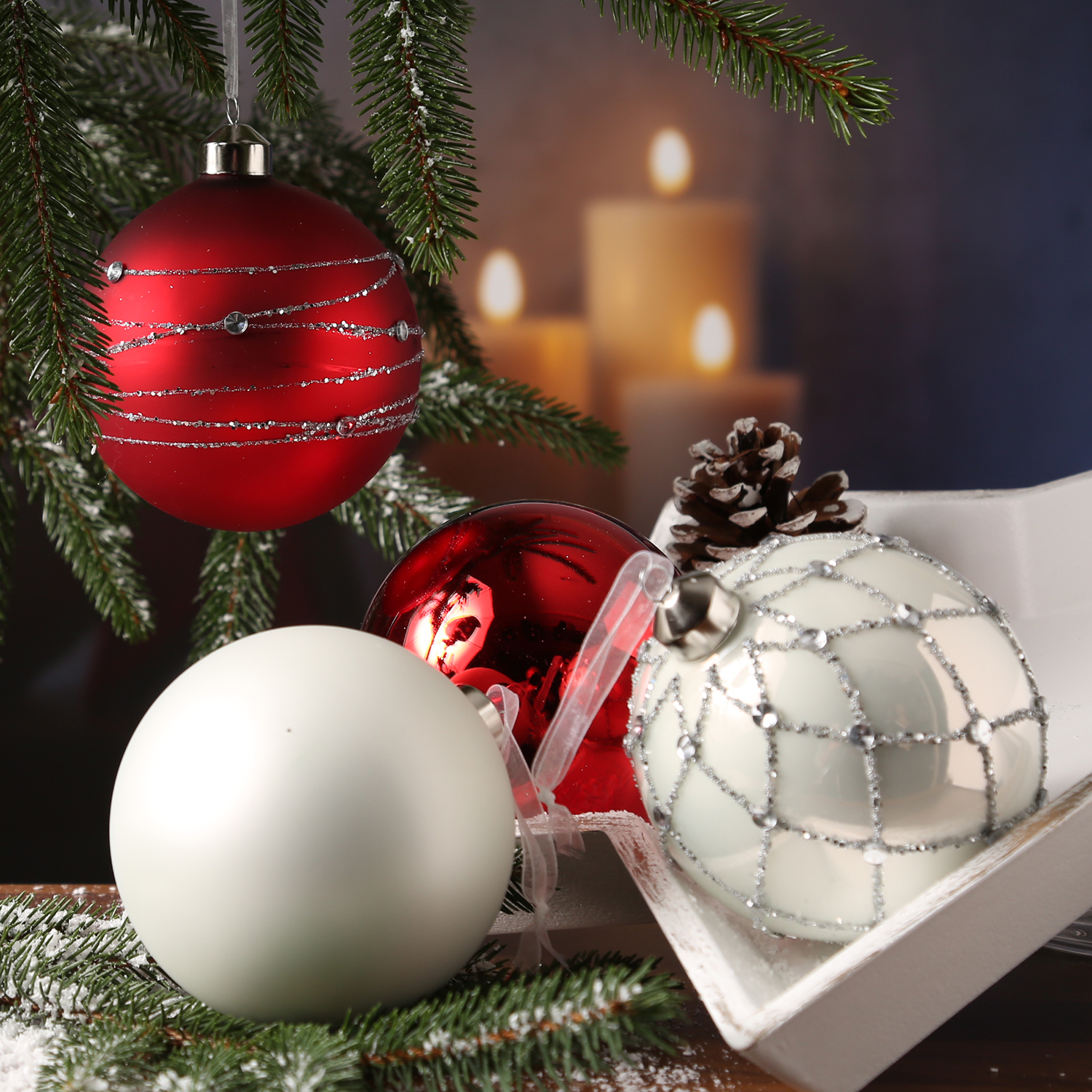 ✔ Rote und weiße Baumkugeln