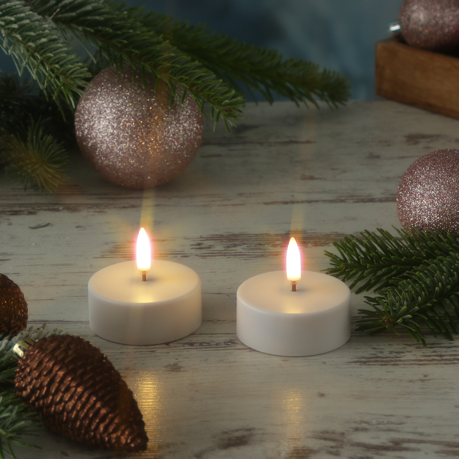 LED Maxi Teelichter - 2 wiederaufladbare LED Teelichter - D: 6cm - Timer - weiß - für Außen