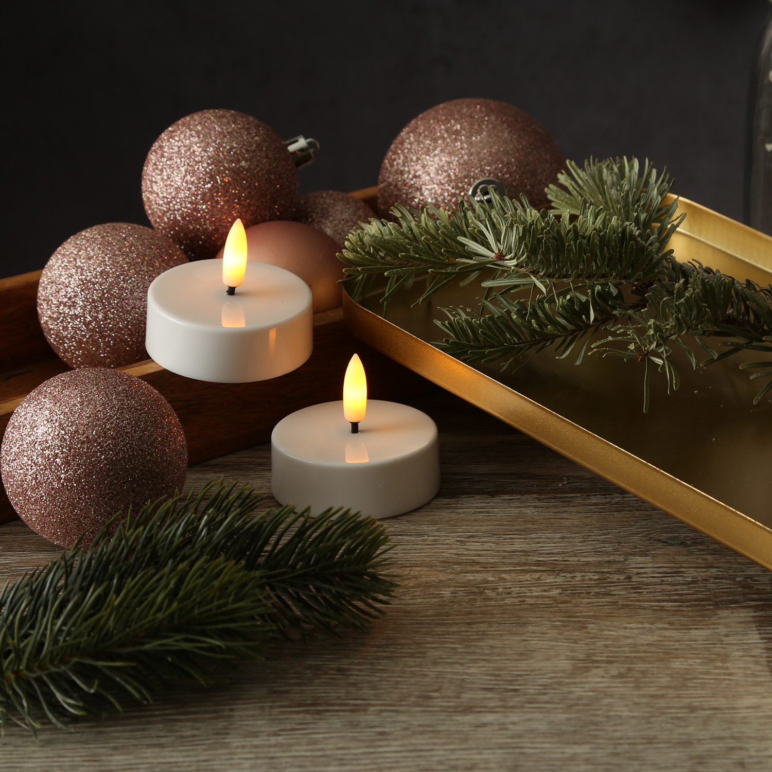 Die LED Maxi Teelichter haben eine glatte Kunststoffoberfläche und bringen einen modernen, schlichten Look mit, der sich vielseitig kombinieren lässt. Ob auf dem Tisch, in großen Windlichtern, auf Kommoden oder in deiner saisonalen Deko - sie passen sich das ganze Jahr über jedem Wohnstil mühelos an.