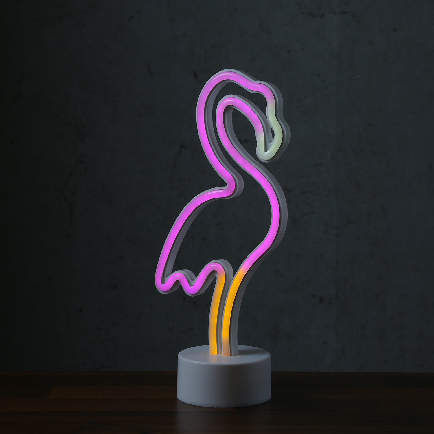 LED NEON Figur FLAMINGO - Neonlicht - H: 30cm - Batteriebetrieb - stehend - pink/gelb